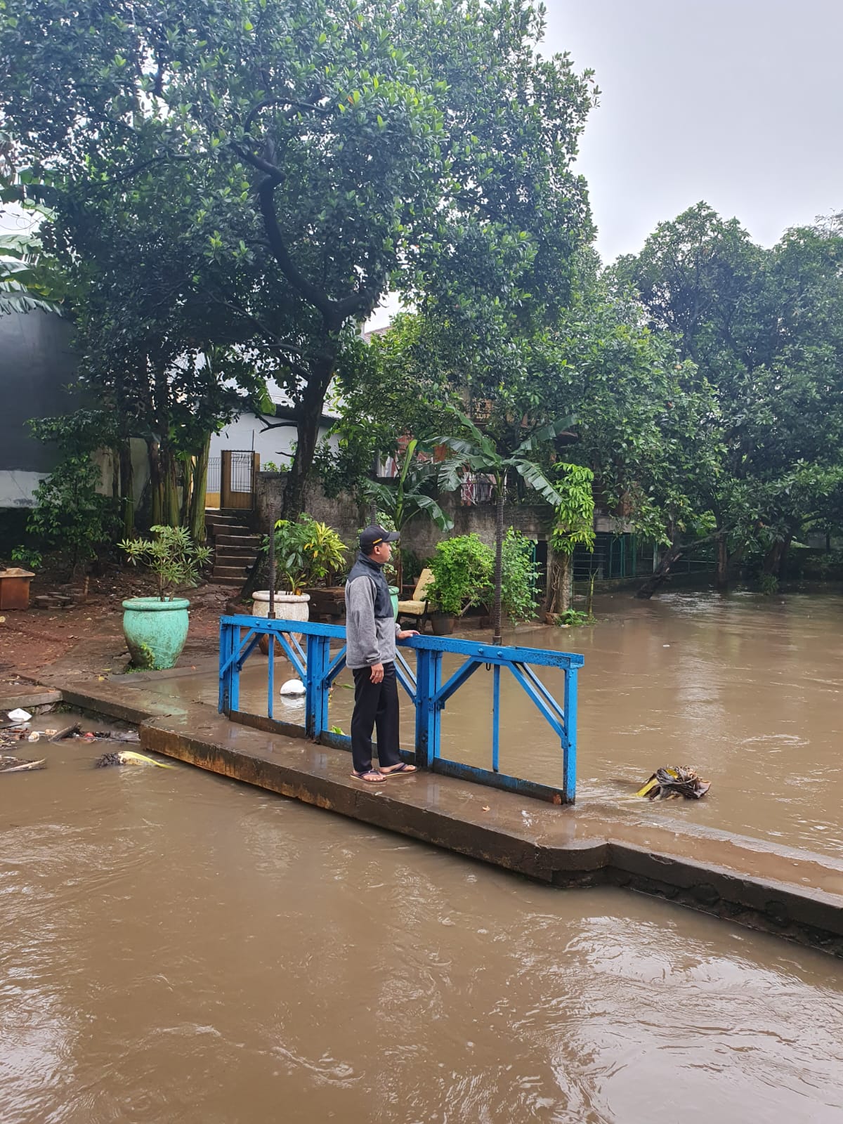 Monitoring Ketinggian Debit Air Pasca Hujan di Pintu Air Kali Ciputat Kelurahan Paninggilan