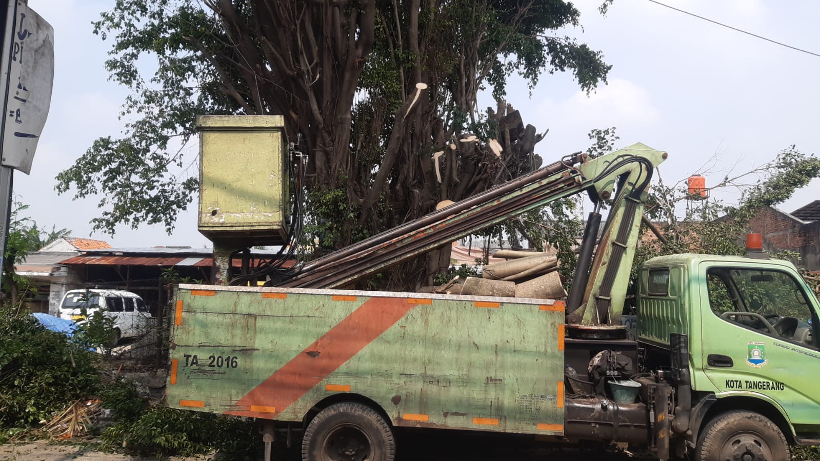 Monitoring Penebangan Pohon oleh Disbudpar Kota Tangerang di Jl. Tanah Seratus